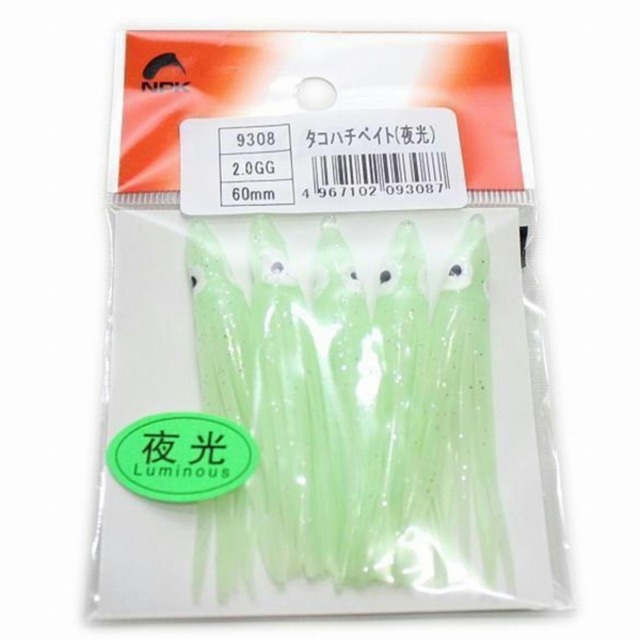 トローリング、ルアーフィッシング、インチク、タイラバでの使用や、タコ釣り等のオトリとして大活躍! 【仕様】 サイズ:2.0 全長:60mm 入数:5本入り 【カラー】 品番9303:夜光ピンク(GPY) 品番9304:夜光グリーン(GGY) 品番9305:夜光オレンジ(GOY) 品番9306:夜光レッド/ブラック(GPB) 品番9307:夜光ストライプ(GB) 品番9308:夜光(GG) 品番9309:ピンク(P) 品番9310:レッド(R) 品番9311:シルバー(S) 品番9312:ブラウン(BR) 品番9421:ホワイトピンク(WP) 品番9422:蛍光ムラサキ(KM) ※メーカーによっては仕様・カラー等が予告無く変更になる場合がございます。