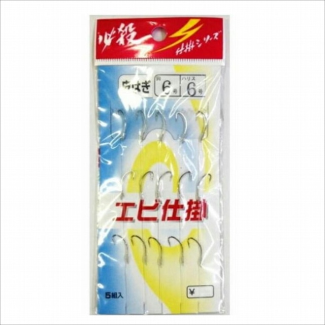対応魚種:船アジ、サバ、アジ、イサキ 製品形態:船・胴突式 全長2.8m 袋入り数:6本鈎1セット 鈎種・色:オキアミ専用 金