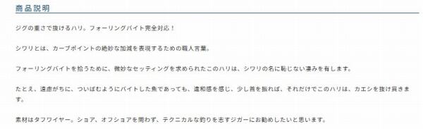 フォーリングバイトを拾うために、微妙なセッティングを求められたこのハリは、シワリの名に恥じない凄みを有します。