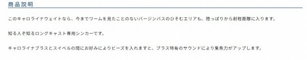 このキャロライナウェイトなら、今までワームを見たことのないバージンバスのひそむエリアも、陸っぱりから射程距離に入ります。