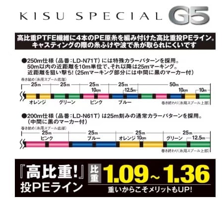 「投げ×高比重」重いからこそメリットもUP。 高比重PTFE繊維に4本のPE原糸を編み付けた高比重投PEライン。 キャスティングの際の糸ふけや波で糸が取られにくいです。 ●G-CROSS工法が生み出す高比重 高比重フッ素繊維に4本のPE原糸を編みつけました。 従来のPEと比較し高比重化が可能になりました。