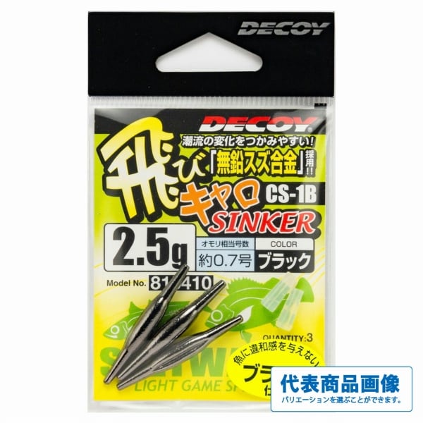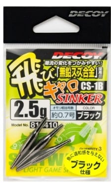 カツイチ デコイ 飛びキャロシンカー ブラック 3.5g ウルトラライトライン・ジグヘッド対応 ライトゲーム専用スプリットシンカー。