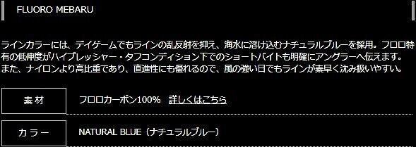 リールに馴染み、ライントラブルを抑えるしなやか重点設計。高比重(1.78)なので、風に強く、糸フケが出にくい。屈折率が1.42で水と近く、水中で見えにくくなります。釣果に差がつく。伸びが少ない。特に初期伸度が