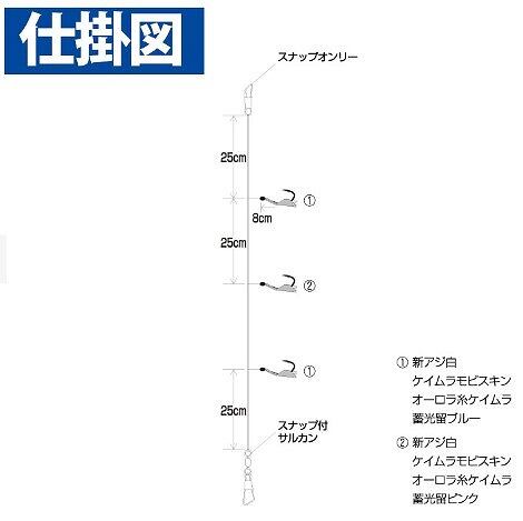柔らかスキンに特殊加工を施し、艶めかしく妖しい発色を実現しました。紫外線を受けながら水に浸かった時の独自の色合いと質感は、今までにない驚きの釣果を可能にします。沖目の群を直撃するために幹糸を通常よりも太い仕様に設計しました。周りの人よりも遠くの群を直撃できる遠投仕様は圧倒的なアドバンテージを可能にします。