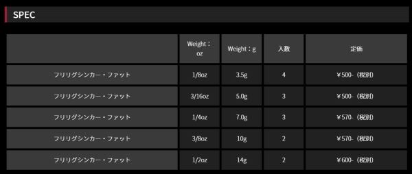 フリリグ シンカー タングステン ファット 3.5g