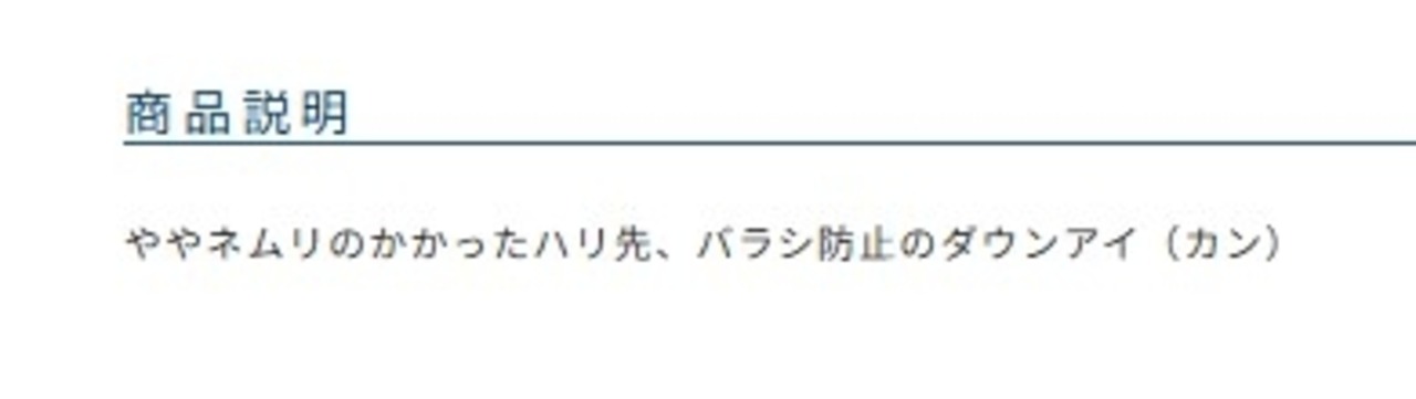 ややネムリのかかったハリ先、バラシ防止のダウンアイ(カン)