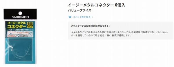 メタル系ラインで仕掛けを作る際に活躍するコネクターです。作業時間が短縮できる上、フロロカーボンを使用しているので吸水劣化に強く、強度が持続します。