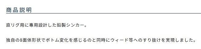 独自の8面体形状でボトム変化を感じるのと同時にウィード等へのすり抜けを実現しました。