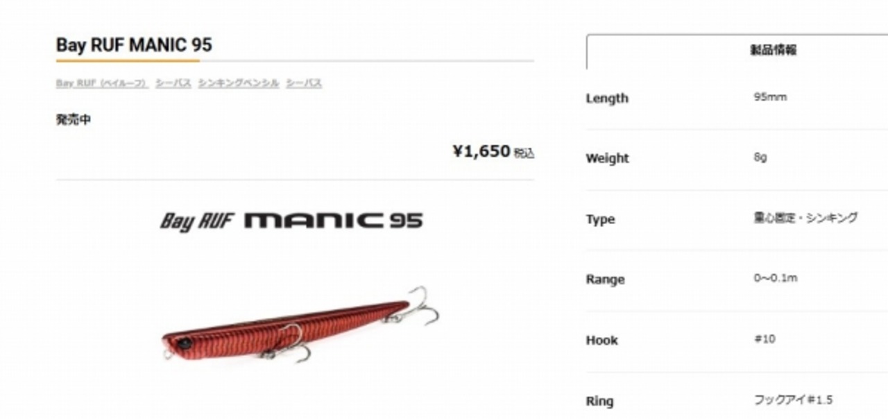 唯一無二のアクション”マニックムーヴ”が生み出す繊細な波動でシーバスの側線を刺激し、偏食著しいバチパターンはもちろん、人的プレッシャーの高いタフコン下でも圧倒的 なバイトをもたらします。
