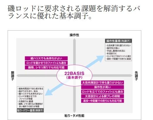 磯において釣れる潮・タイミングは一瞬のように短い。速く、正確に、状況に適した動作を求められる中で、ロッドに必要とされる要素は「正確を極める操作性」「海の状態を把握する感度」「掛けた魚を素早く浮かせるパワー」など多岐に渡る。BASISでは一日を通してそれらロッドに科せられる幾多の課題をロッド全体の適切な重量バランスを追求することで解消。ブランクスには軽くて強い基本構造スパイラルXコア。ガイドには軽さと感度に優れ、糸ガラミを激減させるXガイド。グリップエンドにはファイトの際に安定感を創出するファイティングサポートグリップ。その全てが自重の軽さに現れない、持ち軽さを高める事に貢献。細かな攻めの動作が釣果に結び付くフカセ釣りにおける万人が扱いやすいロッドを目指し、重心位置を極力手元に寄せたバランス設定と美しい基本調子の曲がりを採用。BASISは、持った瞬間、操作した瞬間、釣り人の感性を研ぎ澄まし、魚との距離を近づける。