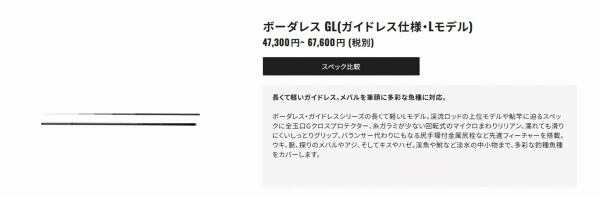 ボーダレス・ガイドレスシリーズに、長くて軽いLモデルが新登場。渓流ロッドの上位モデルや鮎竿に迫るスペックに全玉口Gクロスプロテクター、糸ガラミが少ない回転式のマイクロまわりリリアン、濡れても滑りにくいしっとりグリップ、バランサー代わりにもなる尻手環付金属尻栓など先進フィーチャーを搭載。ウキ、脈、探りのメバルやアジ、そしてキスやハゼ。渓魚や鮒など淡水の中小物まで、多彩な釣種魚種をカバーします。