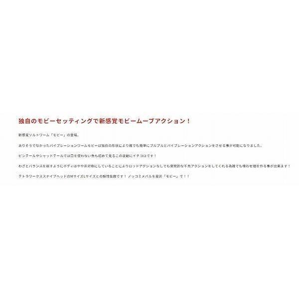 ●ありそうでなかったバイブレーションワームモビーは独自の形状により誰でも簡単にプルプルとバイブレーションアクションをさせる事が可能になりました。