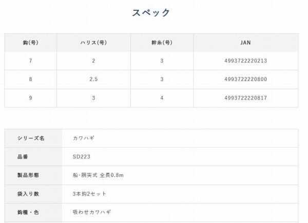SD223 瞬貫カワハギビーズ式吸わせ針7号