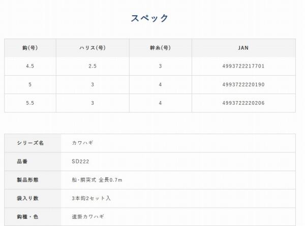 SD222 瞬貫カワハギビーズ式速掛カワハギ針4.5号