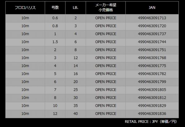 フロロハリス 10m 透明 0.8号 (3Lb)