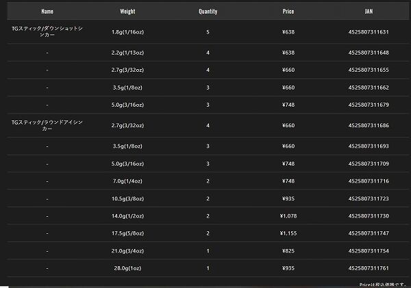 TGスティック ラウント゛アイシンカー 7.0g(1/4oz)