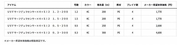 UVFサーフデュラセンサー×4+Si2 0.5 250