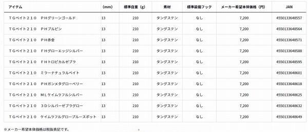 TGベイト210 FHグローエッジシルバー
