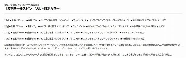 レアリス スピン 11g SW マットインパクトチャートGB