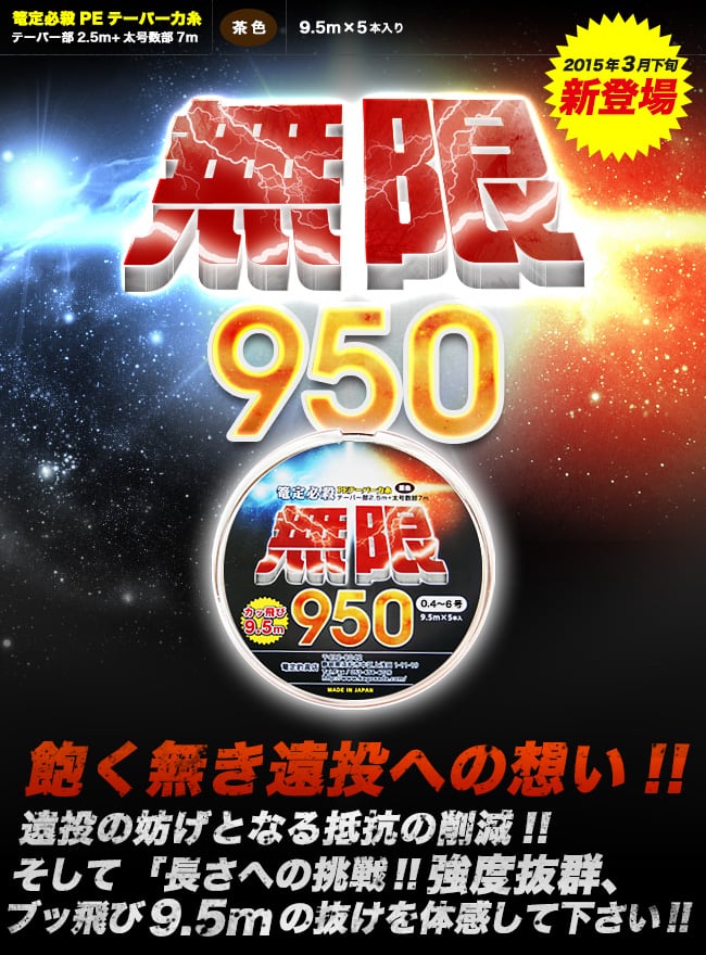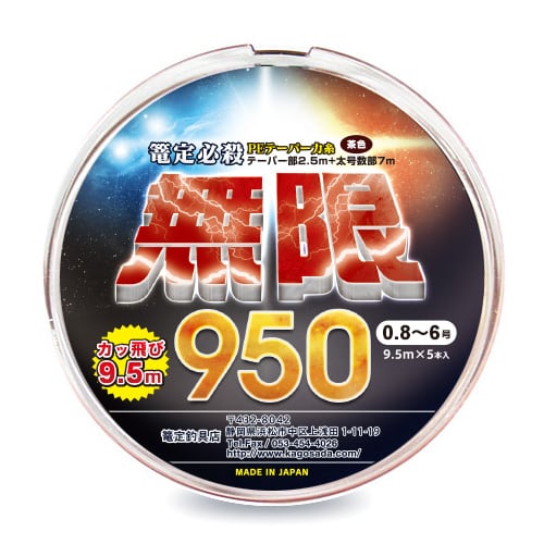 篭定必殺PEテーパー力糸9.5m・5本巻・無限950/0.4〜6号【篭定】