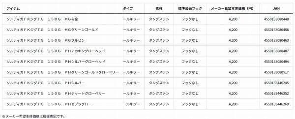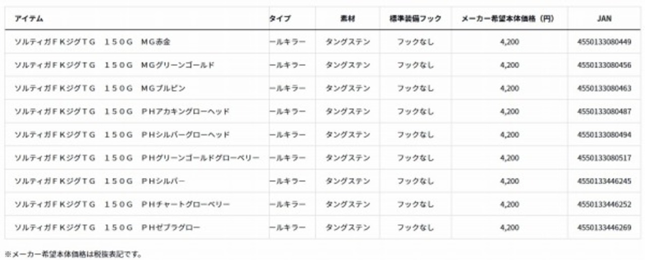 SGFKジグTG150 PHチャートGB