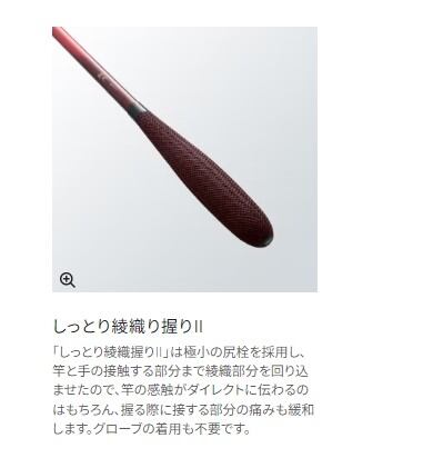 操作性を高める穂先にはタフテックインフィニティ半無垢穂先を採用。繊細な竿さばきと、水切れを両立し、レスポンスのよさを感じていただけることでしょう。また一般的にパワーロッドは手への負担が多くなりがちですが、しっとり綾織握り?が疲労感を和らげます。