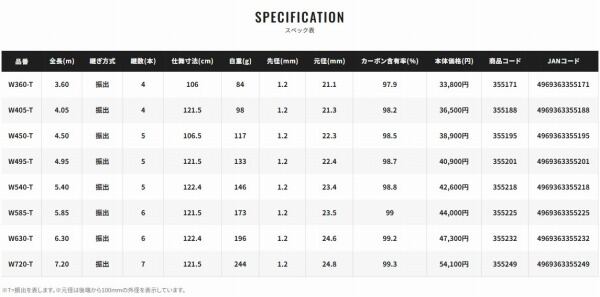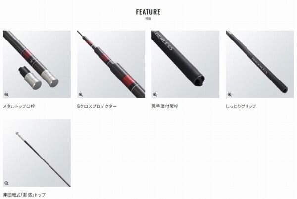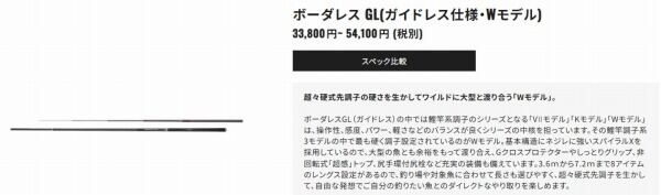 ボーダレスGL(ガイドレス)の中では鯉竿系調子のシリーズとなる「V?モデル」「Kモデル」「Wモデル」は、操作性、感度、パワー、軽さなどのバランスが良くシリーズの中核を担っています。その鯉竿調子系3モデルの中で最も硬く調子設定されているのがWモデル。基本構造にネジレに強いスパイラルXを採用しているので、大型の魚とも余裕をもって渡り合え、Gクロスプロテクターやしっとりグリップ、非回転式「超感」トップ、尻手環付尻栓など充実の装備も備えています。3.6mから7.2mまで8アイテムのレングス設定があるので、釣り場や対象魚に合わせて長さも選びやすく、超々硬式先調子を生かして、自由な発想でご自分の釣りたい魚とのダイレクトなやり取りを楽しめます。