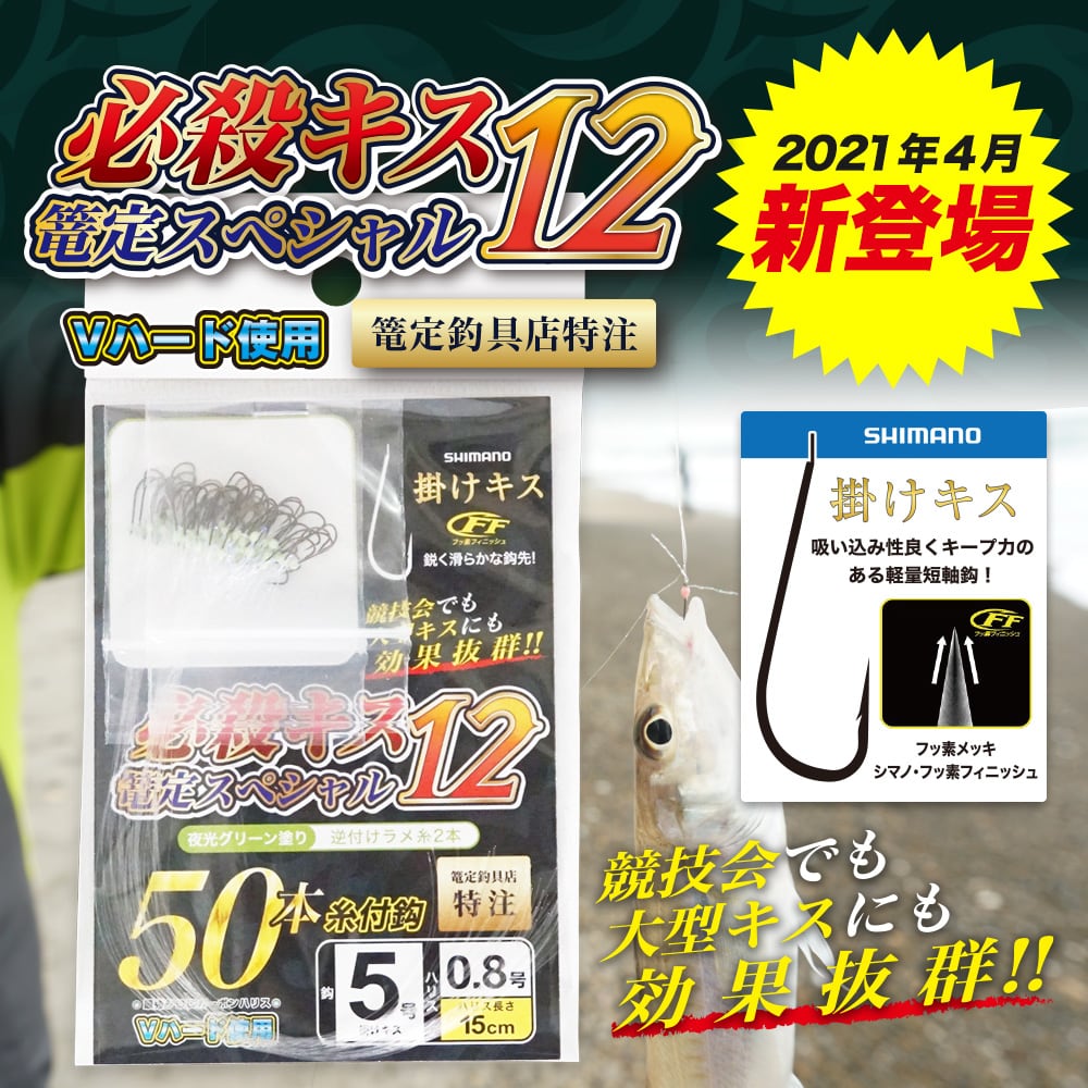 必殺キス篭定12掛けキス(夜光グリーン塗り)5号-Vハードハリス0.8号【篭定】