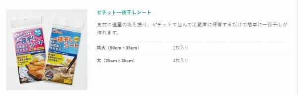食材に適量の塩を振り、ピチットで包んで冷蔵庫に保管するだけで簡単に一夜干しが作れます。