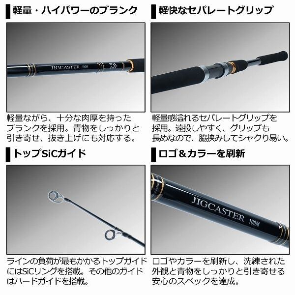 重たいルアーを遠くまで投げる。魚の強い引きをしっかりと受けとめる。体にフィットして操作がしやすい。そんなショアジギングロッドで重要な要素をしっかりと網羅するショアジギングロッドのエントリーモデル。トップガイドはラインに優しいSiC仕様。