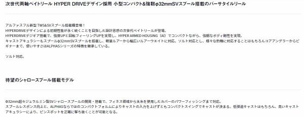 アルファスフル新型 TWS&SVスプール搭載機登場!
