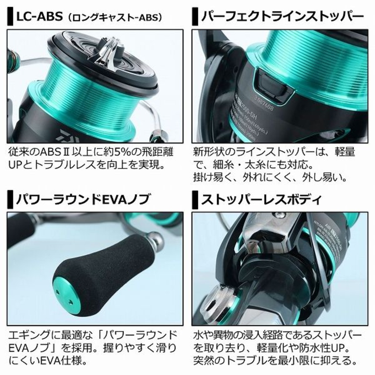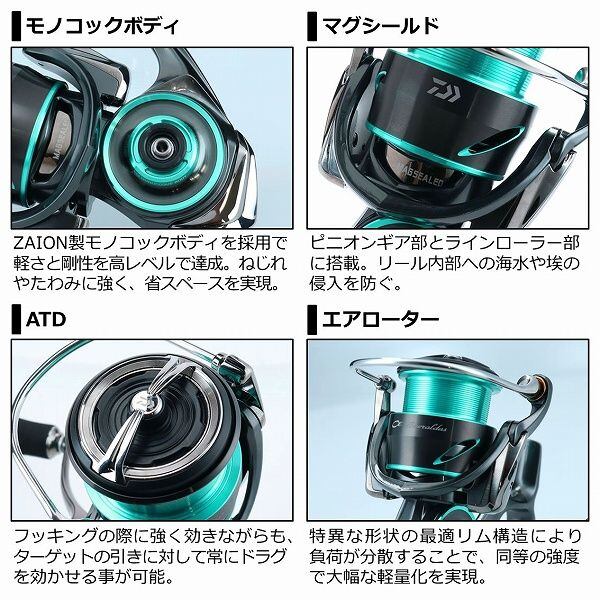 エギングに求められる軽い操作性と、しゃくりに耐えられる剛性。相反する要素を、ZAION製MQ(モノコック)ボディの採用により高いレベルで実現。シーズンを通して使用するエギングオールラウンドモデルとしては、高剛性でトルクフルな巻上げが可能なノーマルLT2500番サイズがオススメ。FC(フィネスカスタム)モデルは、2.5号?3.0号のエギを使用し、浅場をランガンする秋の数釣りシーンに特化させて開発。何より軽さを優先して、1サイズ小型のボディを採用し、飛躍的な軽量化を実現した。パワーラウンドEVAノブを標準搭載し、安定したシャクリを実現する。