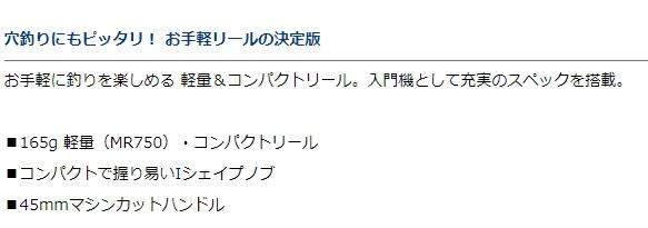 穴釣りにもピッタリ、お手軽リールの決定版。手軽に釣りを楽しめる、軽量&コンパクトリール。入門機として充実のスペックを搭載。