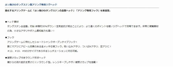 進化するアジングゲームに「ぶっ飛びのタングステン合金製ヘッド」「アジング専用フック」を新提案。