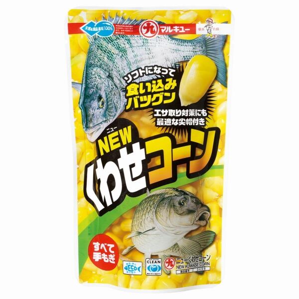 ソフトな仕上がりで食い込みのいいくわせ用コーン。エサ取り対策に効果的な尖帽と、栄養価の高い胚芽を手もぎによりまるごと残しました。魚が好む成分であるアミノ酸も添加し、摂餌効果をさらに高めています。