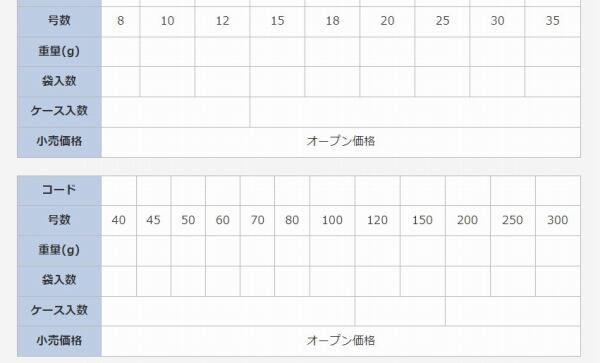 先か゛六角柱に形成されているため沈みか゛早い六角型。豊富な号数て゛浅瀬から深海の釣りに対応。