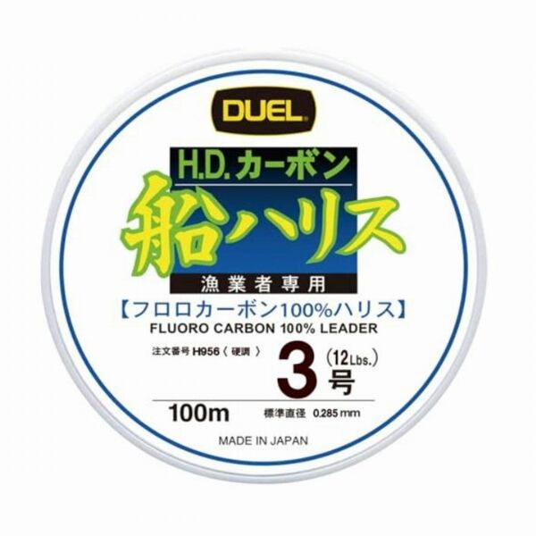 デュエル「H.D.カーボン船ハリス」は、沈みが早い・水中で見えにくい・吸水せず紫外線に強い、といったフロロカーボン独自の特性はそのままに、特殊フッ素系強化樹脂加工による鋭い水切れと耐摩擦性を加え、基本性能を飛躍的に向上しました。