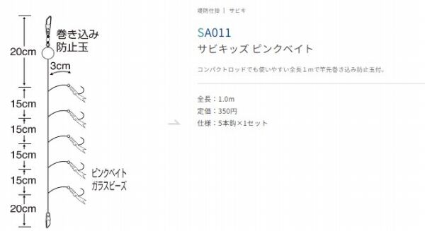 サビキッズピンクベイト、コンパクトロッドでも使いやすい全長1mで竿先巻き込み防止玉付き。