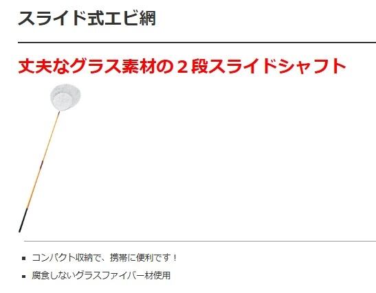 ●廉価版のエビ網にグラス製スライド式登場。●持ち運びに便利なコンパクト設計