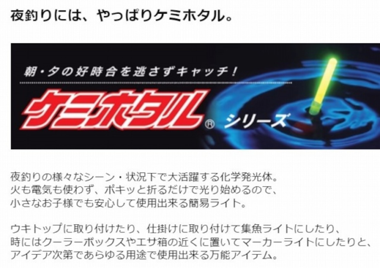 使いやすい個別包装でパッケージもリニューアル!ケミホタルが1本ずつ包装されてさらに便利になりました。ケミホタル25は棒ウキのトップ以外に、付属している透明テープを使って、円錐ウキや斜めウキに巻きつけることができます。また、チューブを短く切って、中通しウキのウキ止めとして使えば、投入時の絡み防止になるとともに、ラインでアタリを取ることが容易になります。