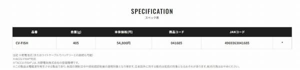 多彩な魚探情報を映し出す探見丸CV-FISHがビーストマスター、フォースマスターとコーディネートしやすいダークカラーにリニューアル。機能面は魚群探知機で得られる5つの情報(海底水深、海底形状、群れの大きさ、魚のタナ、リールカウンターの水深表示)を表示。おおよその魚のサイズが判別できるアキュフィッシュや直射日光下での偏光グラス使用時にも360°鮮明に見える高輝度タイプ液晶、魚の反応を音で知らせてくれるアラーム機能など、多彩な機能にも関わらず操作は簡単。リールとの接続で仕掛けの軌跡を表示。ビジュアル化した魚探情報は多くのフィールドで活躍します。