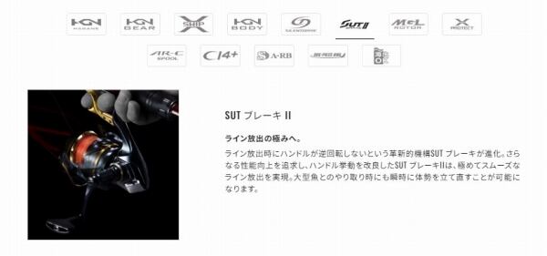 SUTブレーキIIはローター逆転時のブレを徹底排除し、瞬時に糸を出して体制を立て直すことが可能です。強靭、高剛性なHAGANEボディ&ギア、New MGLローターは大物とのやり取りにこの上ないアドバンテージ。海水浸入を防ぐXプロテクトにより耐久性も向上しました。パワーとスピードを両立するギア比6.6:1の2500&C3000DXGに加え、遠投の釣りにおいても圧倒的スピードで手返しを高めるギア比7.2:1の2500&C3000DXXG、さらにロッドを絞り込んだまま巻き続けられる4.6:1のローギア仕様のC4000D TYPE-Gをラインナップしました。New BB-Xテクニウムがあなたと共に磯の頂を目指します。