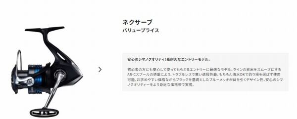 初心者の方にも安心して使ってもらえるエントリーに最適なモデル。ラインの放出をスムーズにするAR-Cスプールの搭載により、トラブルレスで高い遠投性能。もちろん海水OKで釣り場を選ばず使用可能。お求めやすい価格ながらブラックを基調としたブルーメッキが目を引くデザイン性。安心のシマノクオリティーをより身近な価格帯で実現。