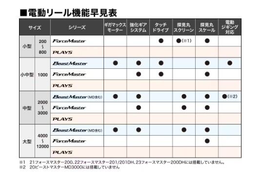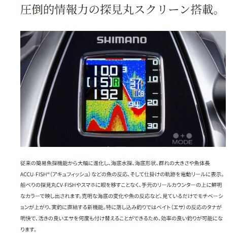 大型魚やイカの多点掛けなど、パワーと耐久性が求められる釣種領域。これら高負荷の釣りのさらなる追求からモデルチェンジを果たしたのがフォースマスター3000です。パワーで鳴らした前作17フォースマスター3000XPのMUTEKI MOTOR+の心臓部を継承。新たに驚異の耐久性を実現した強化ギアシステムを搭載することで、大型青物や巨大底物、さらに巻き上げ距離が長く、多点の負荷が掛かり続ける沖イカ釣りを新たな次元へと引き上げます。またカラー魚探表示の探?丸スクリーンの搭載により、海底水深や形状、群れの?きさ、仕掛けの軌跡など多くの情報を視覚化。常に先手の戦術を取ることが可能になりました。信頼のパワーに鍛え上げられたタフネス。そして情報の掌握がもたらす大いなるアドバンテージ。フォースマスター3000が新たな船釣りのストロングスタイルを切り開きます。