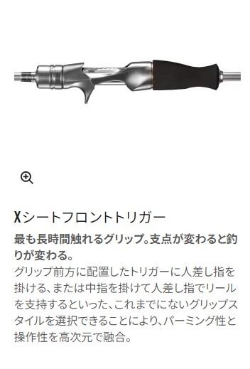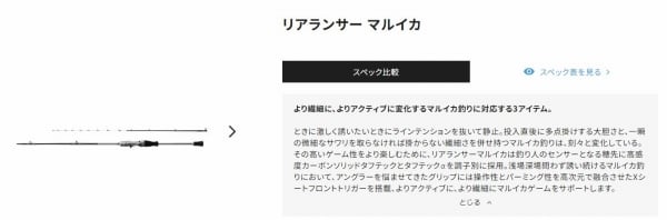 ときに激しく誘いたいときにラインテンションを抜いて静止。投入直後に多点掛けする大胆さと、一瞬の微細なサワリを取らなければ掛からない繊細さを併せ持つマルイカ釣りは、刻々と変化している。その高いゲーム性をより楽しむために、リアランサーマルイカは釣り人のセンサーとなる穂先に高感度カーボンソリッドタフテックとタフテックαを調子別に採用。浅場深場問わず誘い続けるマルイカ釣りにおいて、アングラーを悩ませてきたグリップには操作性とパーミング性を高次元で融合させたXシートフロントトリガーを搭載、よりアクティブに、より繊細にマルイカゲームをサポートします。