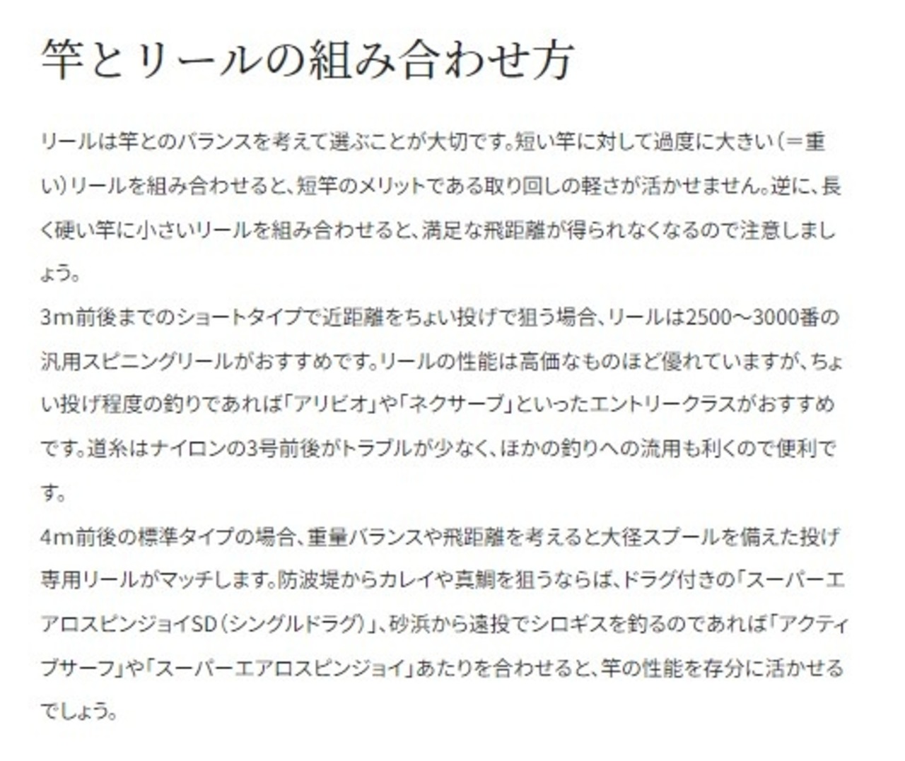 ショートサイズの振りぬけ・取り回しの良さで、ジュニアや女性、シルバーエイジの方でも扱いやすく、防波堤からサーフまで軽快なキャストが可能です。仕舞寸法が短いため携帯性に優れ、手軽に投げ釣りをお楽しみいただけます。コントロール精度の向上に欠かせないキャスコングリップも搭載。新たに採用された塗装手法で高級感も大幅にアップしました。