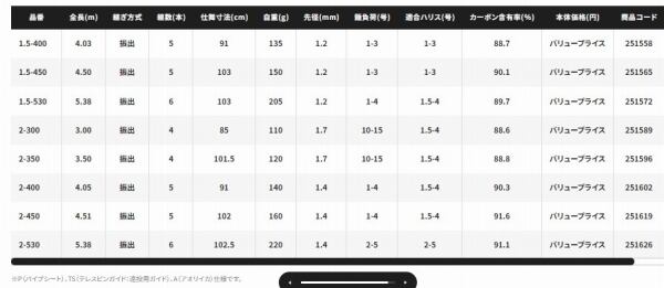 ノーマルモデルはサビキやチョイ投げに適した3mのショートレングスから、磯の上物にも挑める5m30cmまでラインナップ。
