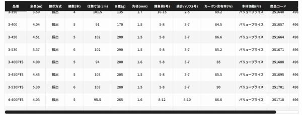 ノーマルモデルはサビキやチョイ投げに適した3mのショートレングスから、磯の上物にも挑める5m30cmまでラインナップ。