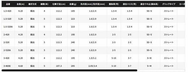 ハイグレードなデザインをまといIG ハイスピード アペルトがモデルチェンジ。夜 釣りや悪天候など、コンディションに左右されにくいインナーガイドで、#1にハ イパーリペル処理を施すことによりライン放出性能も秀逸。1.5号420から5号-520 遠投まで13種類に及ぶワイドラインナップは、多彩な釣法やフィールド に対応。アオリイカモデルはアタリの視認性にこだわった白塗り穂先を採用。全ピース分解可能(遠投モデル除く)なのでイージーメンテナンスで初期性能を長く保ちます。