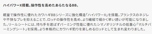 軽量で操作性に優れたカワハギBBシリーズに強化構造「ハイパワーX」を搭載。ブランクスのネジレや不快なブレを抑えることで、ロッドの操作性を高め、より繊細で細かく早い誘いが可能になりました。